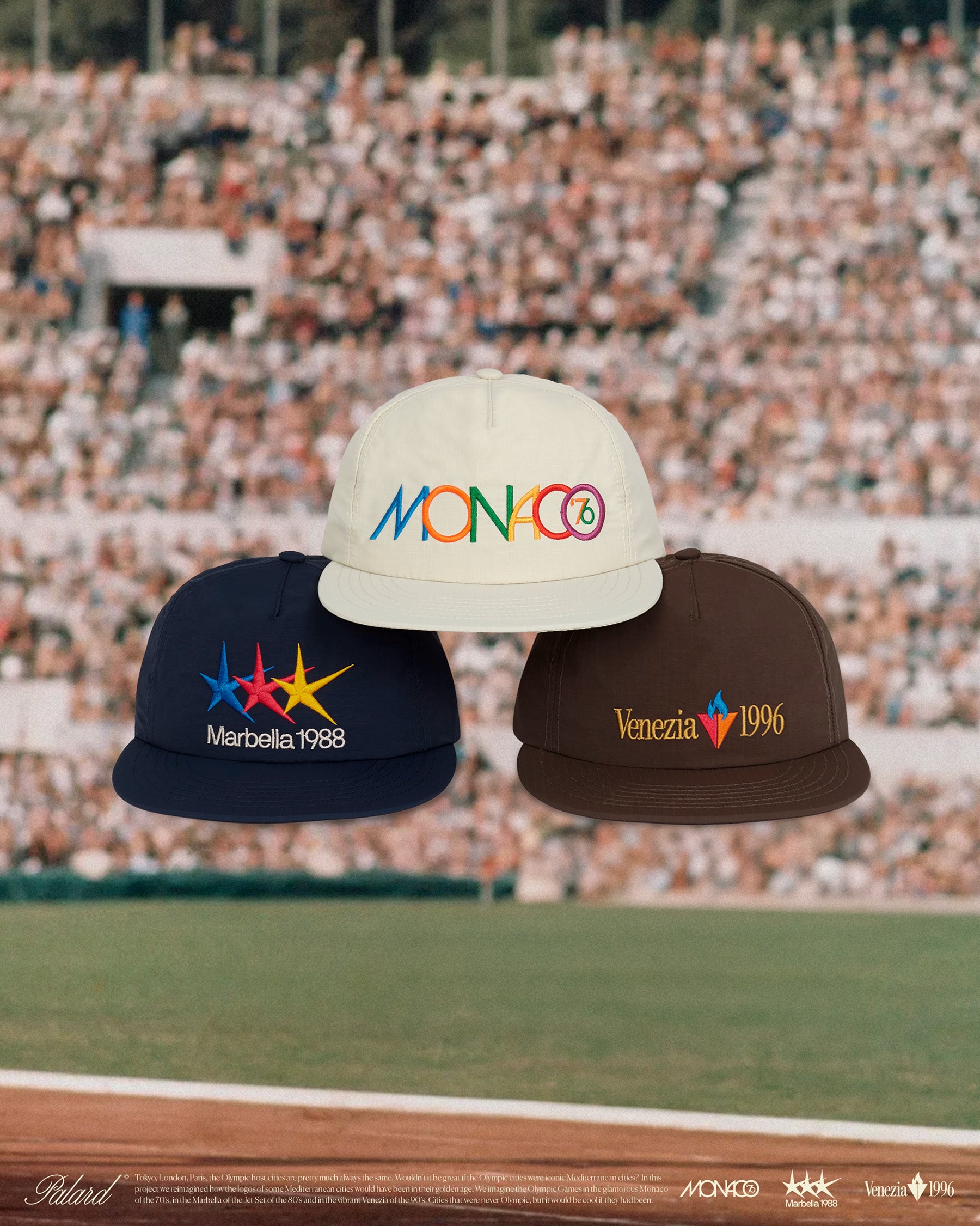 For this project, Palard launched a limited edition capsule of three snapback style caps, in nylon ripstop fabric, with embroidered logos of the dream Olympic cities.