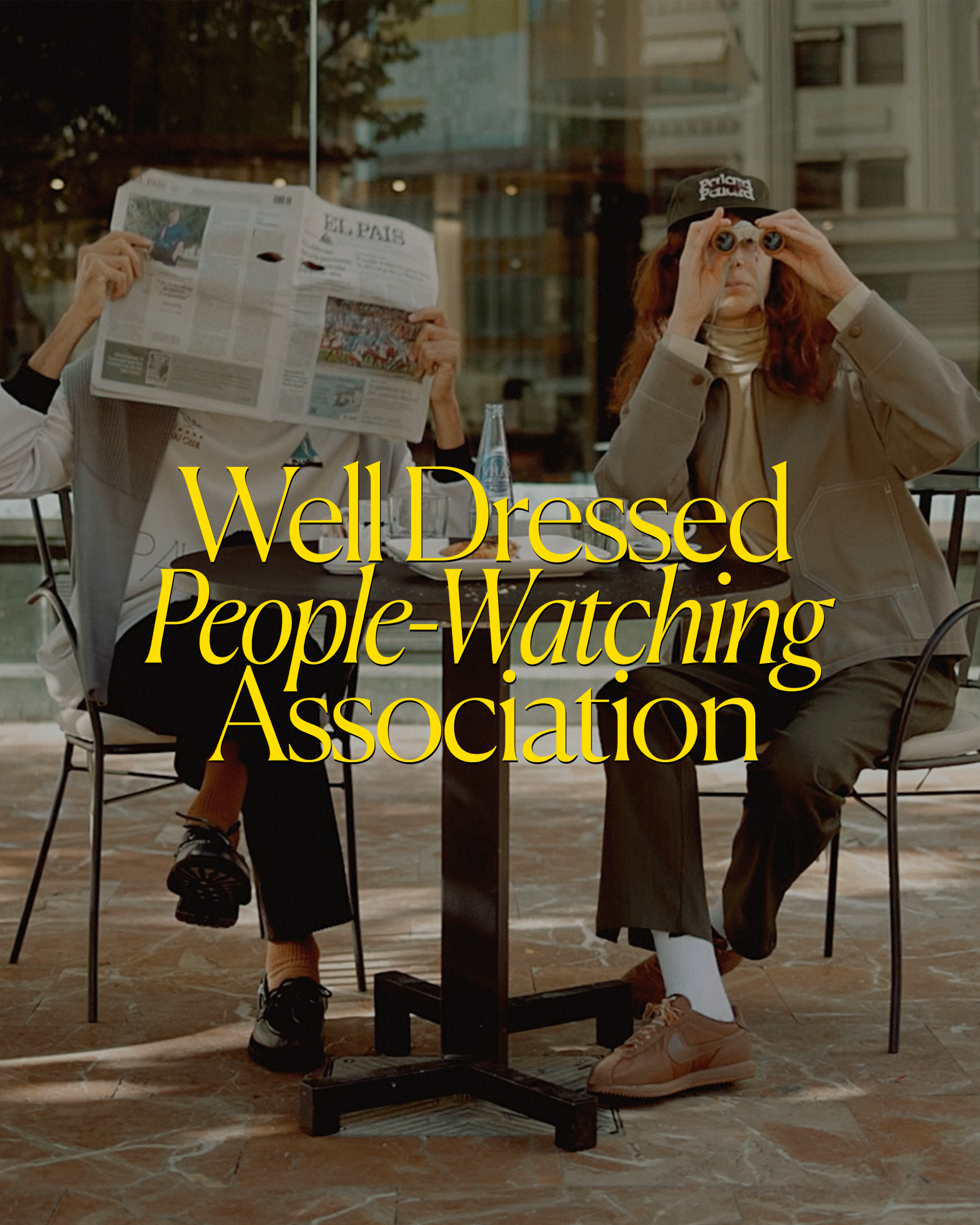 We've collaborated with Legit to create a fictional club, the “Well Dressed People-Watching Association” inspired by the idea of going back to the streets to find real inspiration.